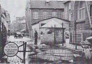 Gestapo-hovedkvarteret i Århus. En ‘fæstning’ med skodder for stueetagens vinduer, som beskyttelse mod snigskytter og hjørnebunkers med skydeskår. Til sidst turde Gestapo-folkene ikke tage hjem af frygt for likvidering men overnattede i cellerne i kælderen.